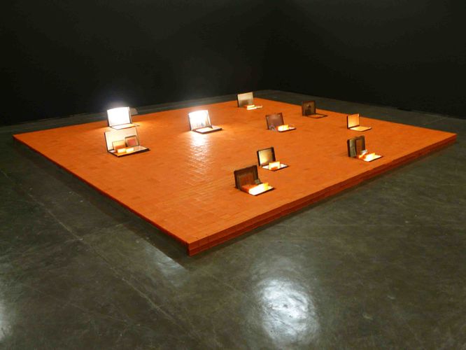Passeurs, 50x500x500 cm, savons, valises, fluo, divers éléments.photo: Jacques Leenhardt