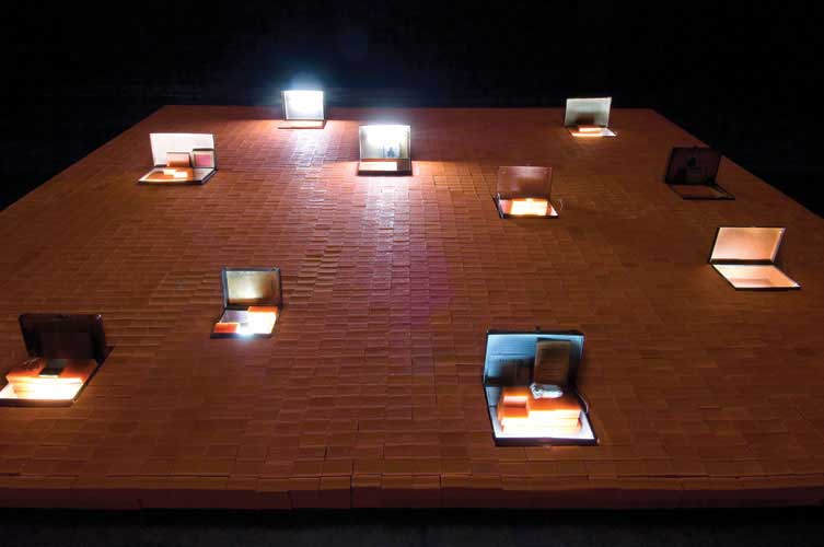 Passeurs, 50x500x500 cm, savons, valises, fluo, divers éléments.