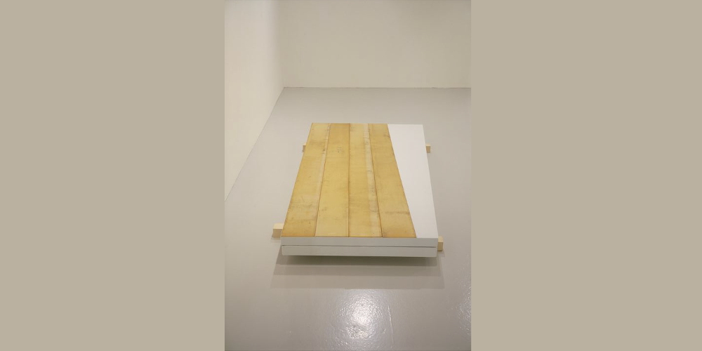 Sans titre, 200x120x30cm, acier émaillé blanc, bois, photo: Michel Gouery.
